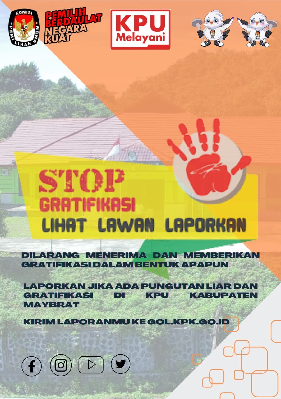 Sesuai dengan Peraturan Komisi Pemilihan Umum Republik Indonesia Nomor 15 Tahun 2015 tentang Pengendalian Gratifikasi di Lingkungan Komisi Pemilihan Umum, KPU Kabupaten maybrat melaksanakan kegiatan Zona Anti Gratifikasi sesuai peraturan berlaku