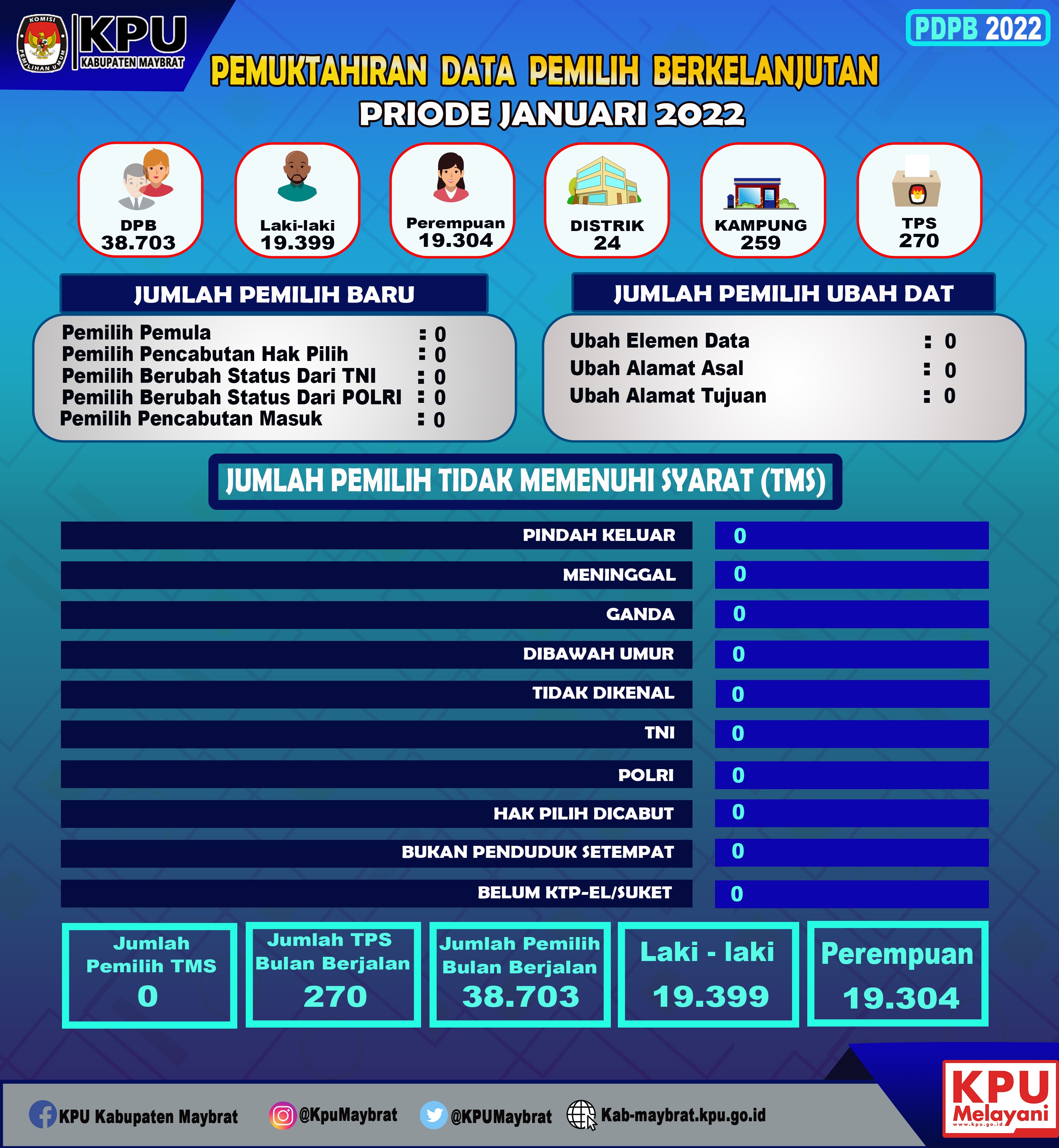 REKAPITULASI DAFTAR PEMILIH HASIL PDPB BULAN JANUARI TAHUN 2022 Kamis, 01 Januari 1970 07:00 607 DEMOGRAPHY SESUAI DENGAN BA Baca Selengkapnya