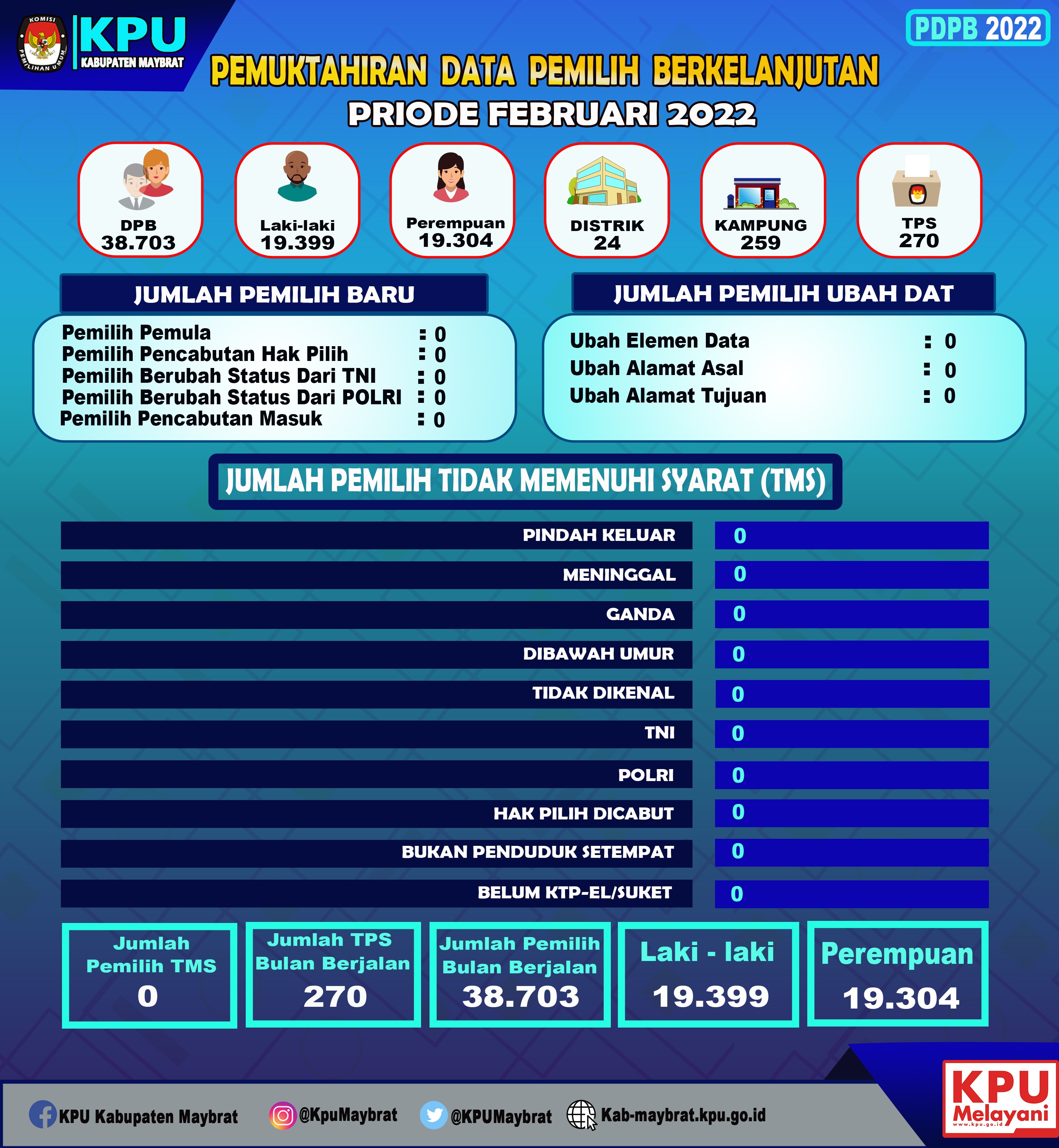 Pemuktahiran Data Pemilih Berkelanjutan Priode Februari 2022 Kamis, 01 Januari 1970 07:00 630 Pemuktahiran Data Pemilih Berkelanjutan Priode Februari 2022 Baca Selengkapnya